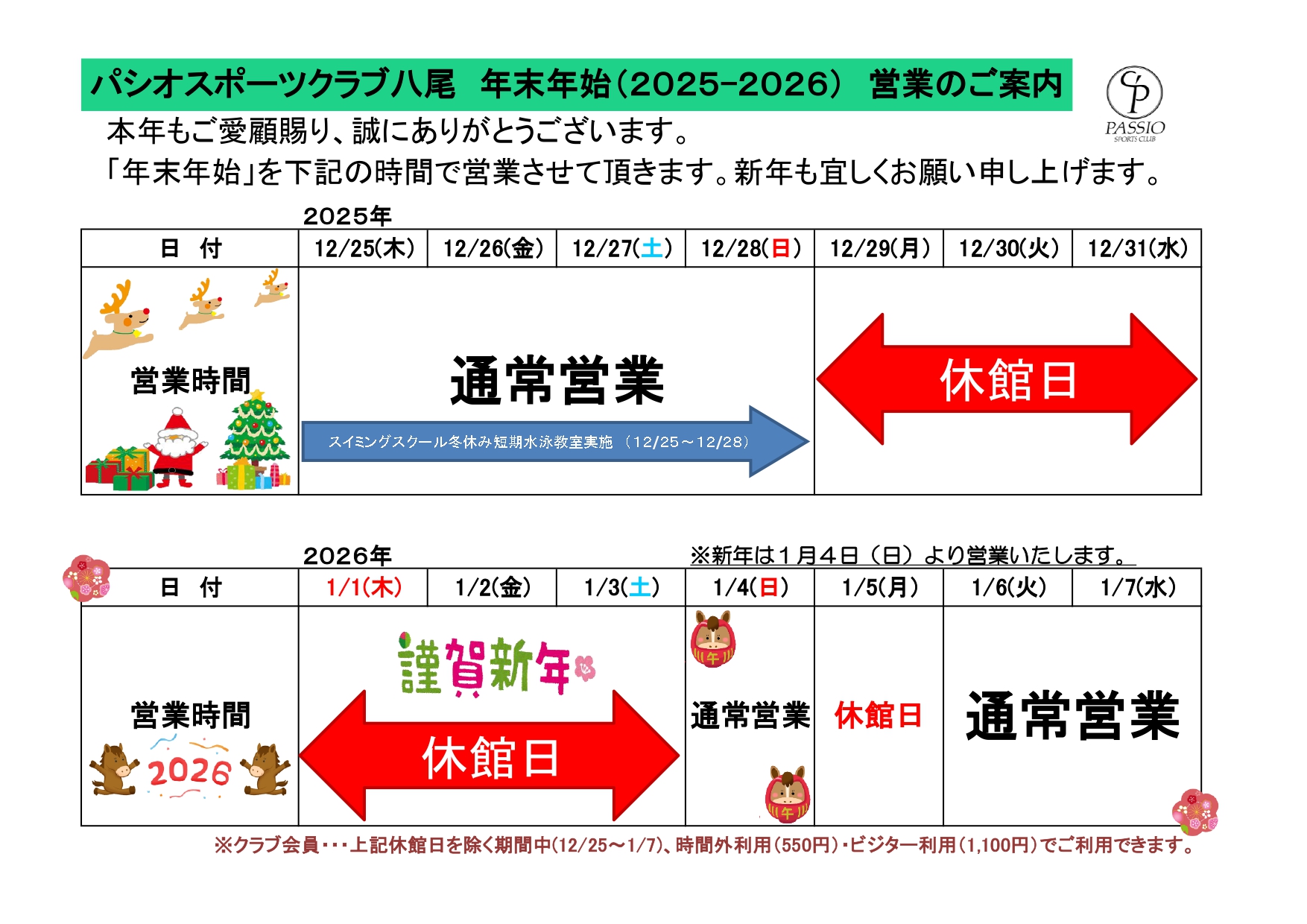 『年末年始』営業のご案内