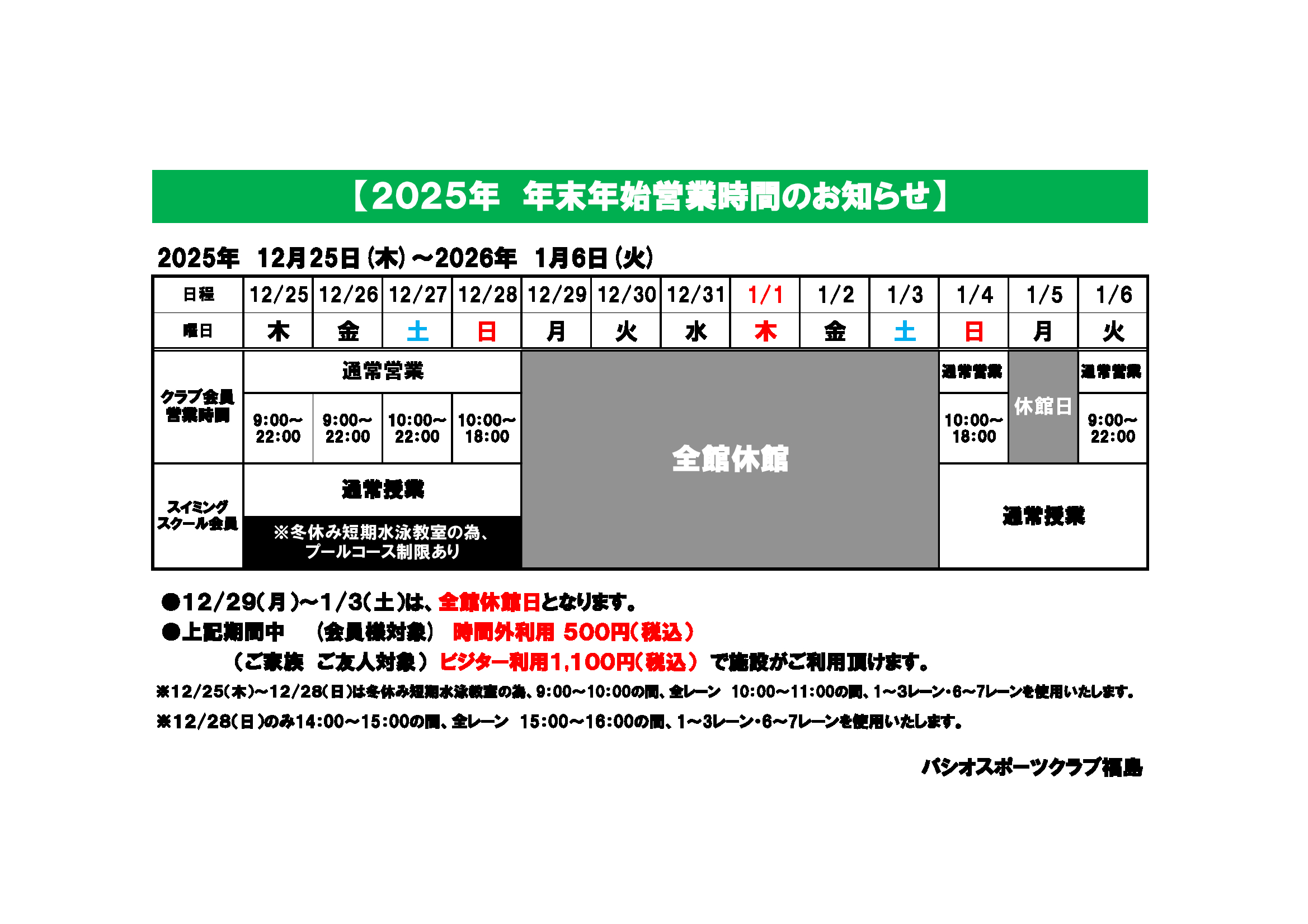 「年末年始」営業のご案内